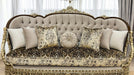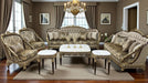 Set includes: 2 Sofas • 2 arm Chairs, Center Table with marble top.